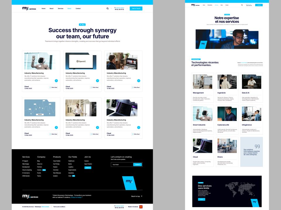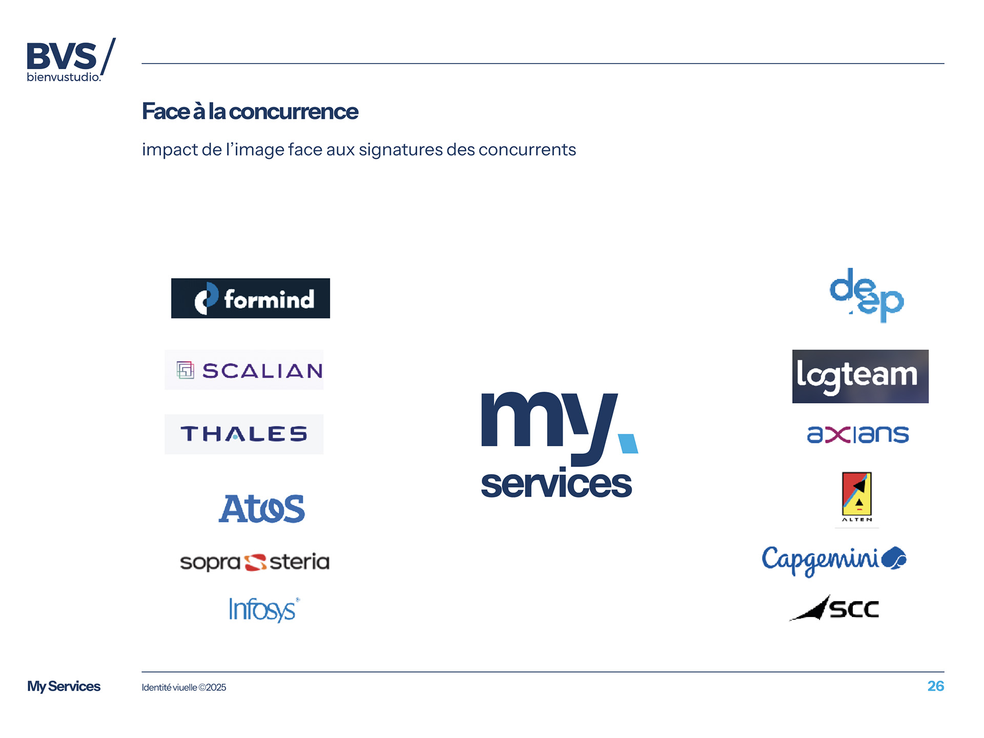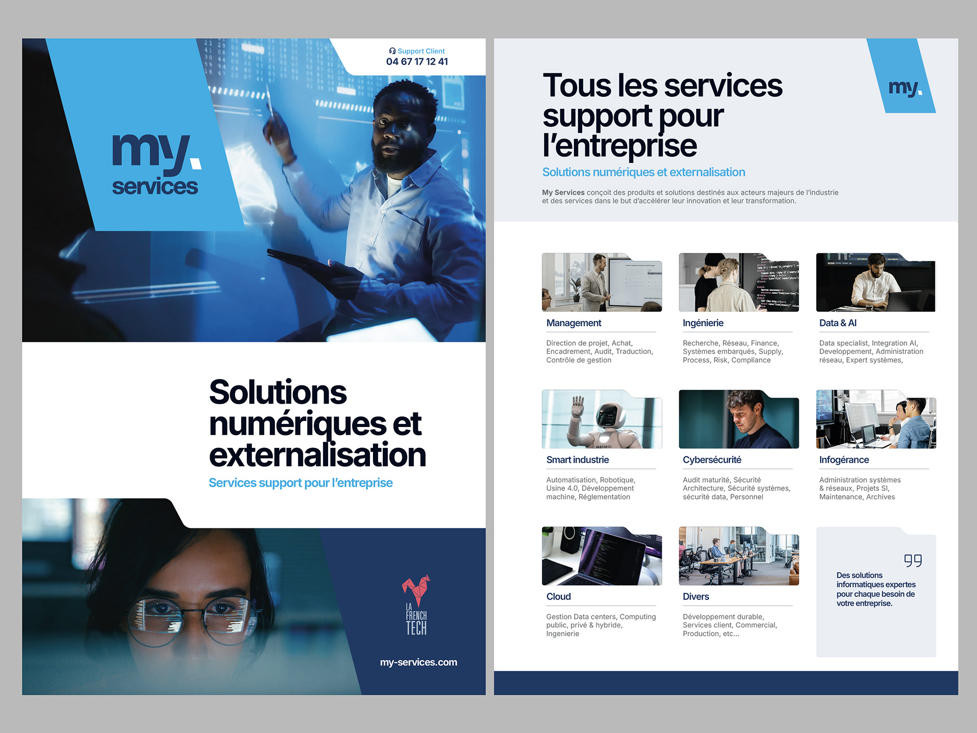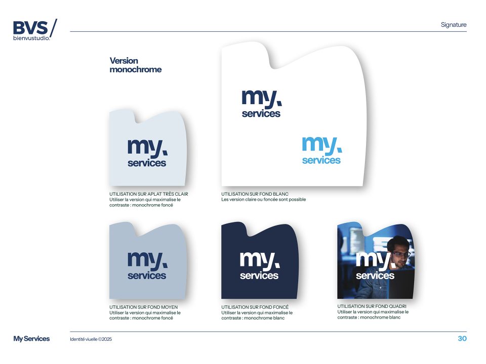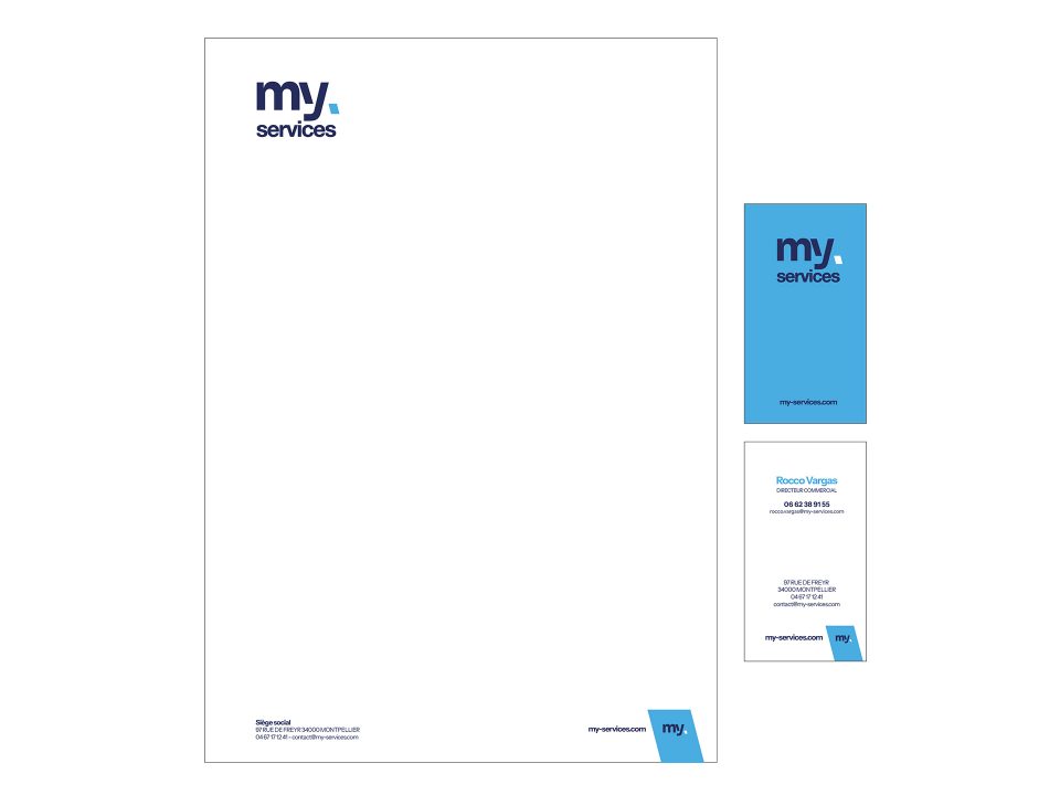 Nous avons créé une identité visuelle en la positionnant au même niveau que les meilleures ESN et ICT nationales. En vue d’une future harmonisation visuelle de toutes les activités du groupe, nous avons développé par anticipation un système de signature commune (MY) qui peut être décliné pour plusieurs activités.