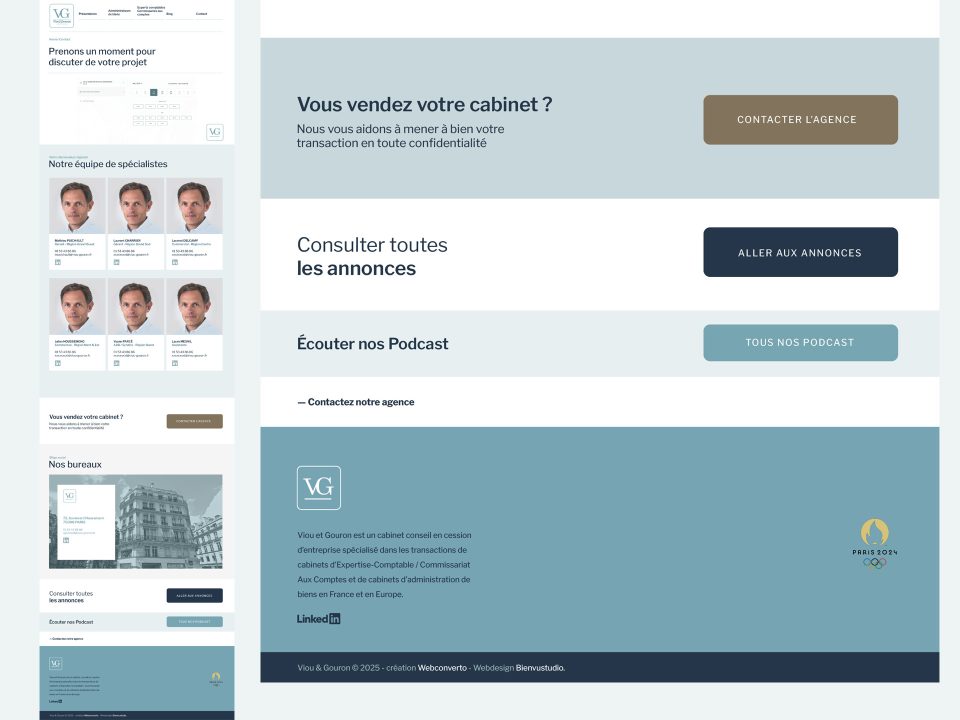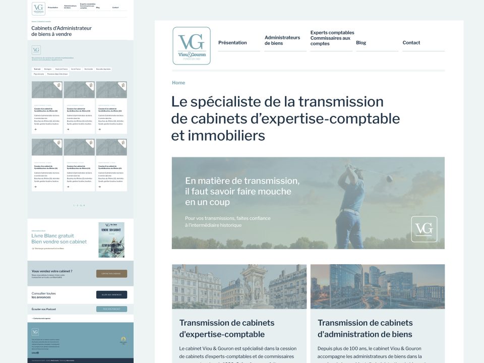 l’objectif était de rajeunir le logo historique sans trop s’éloigner de l’existant. Nous n’avons pas touché au monogramme, mais nous l’avons inclu dans une ambiance graphique au classicisme plus contemporain (une prouesse !) pour ce client qui est le leader de la cession des cabinet d’expert comptables.