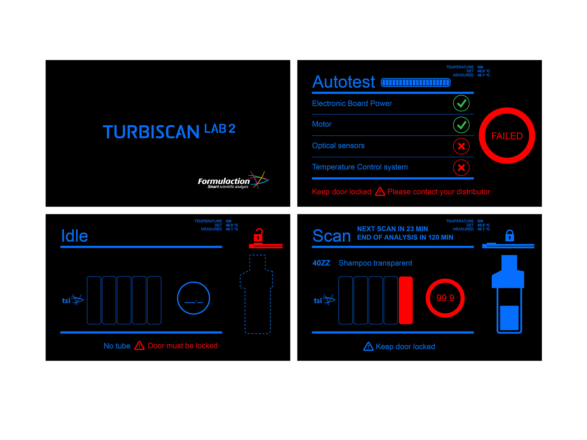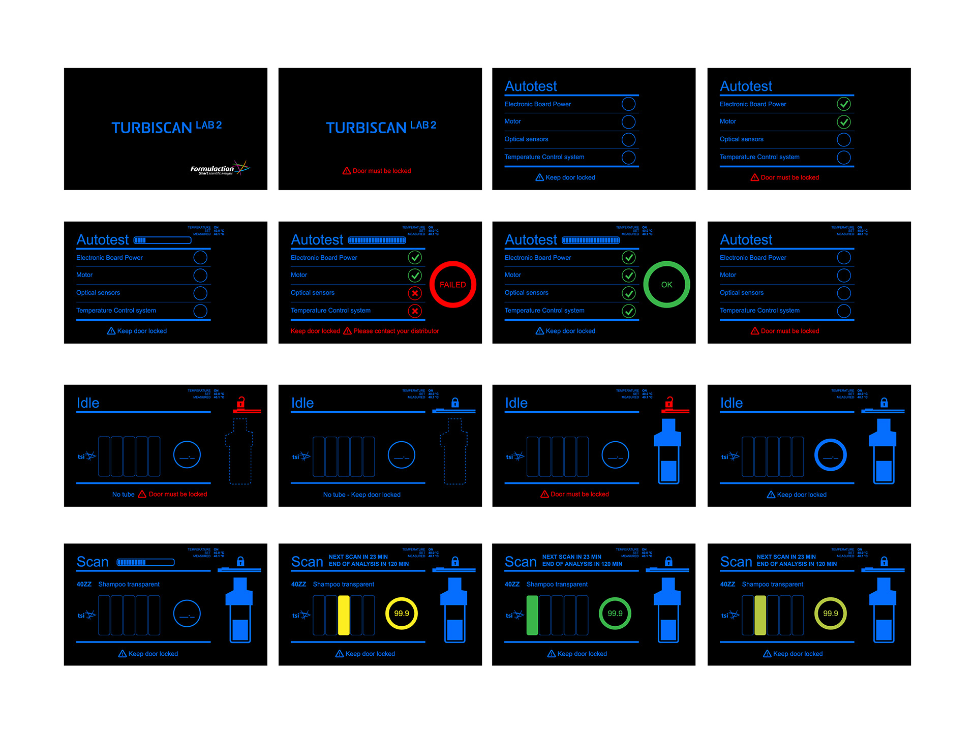 Contrairement à l’idée première du client, nous avons proposé un univers sur fond noir et éléments bleus pour renforcer l’atmosphère bleue des appareils. Les fonctions sont représentées très graphiquement, avec une organisation horizontale très logique et linéaire. La proposition a été adoptée à l’unanimité et déployée sur les autres appareils.
