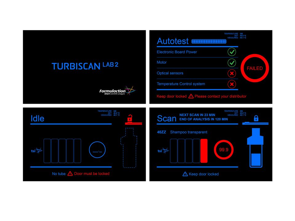 Contrairement à l’idée première du client, nous avons proposé un univers sur fond noir et éléments bleus pour renforcer l’atmosphère bleue des appareils. Les fonctions sont représentées très graphiquement, avec une organisation horizontale très logique et linéaire. La proposition a été adoptée à l’unanimité et déployée sur les autres appareils.