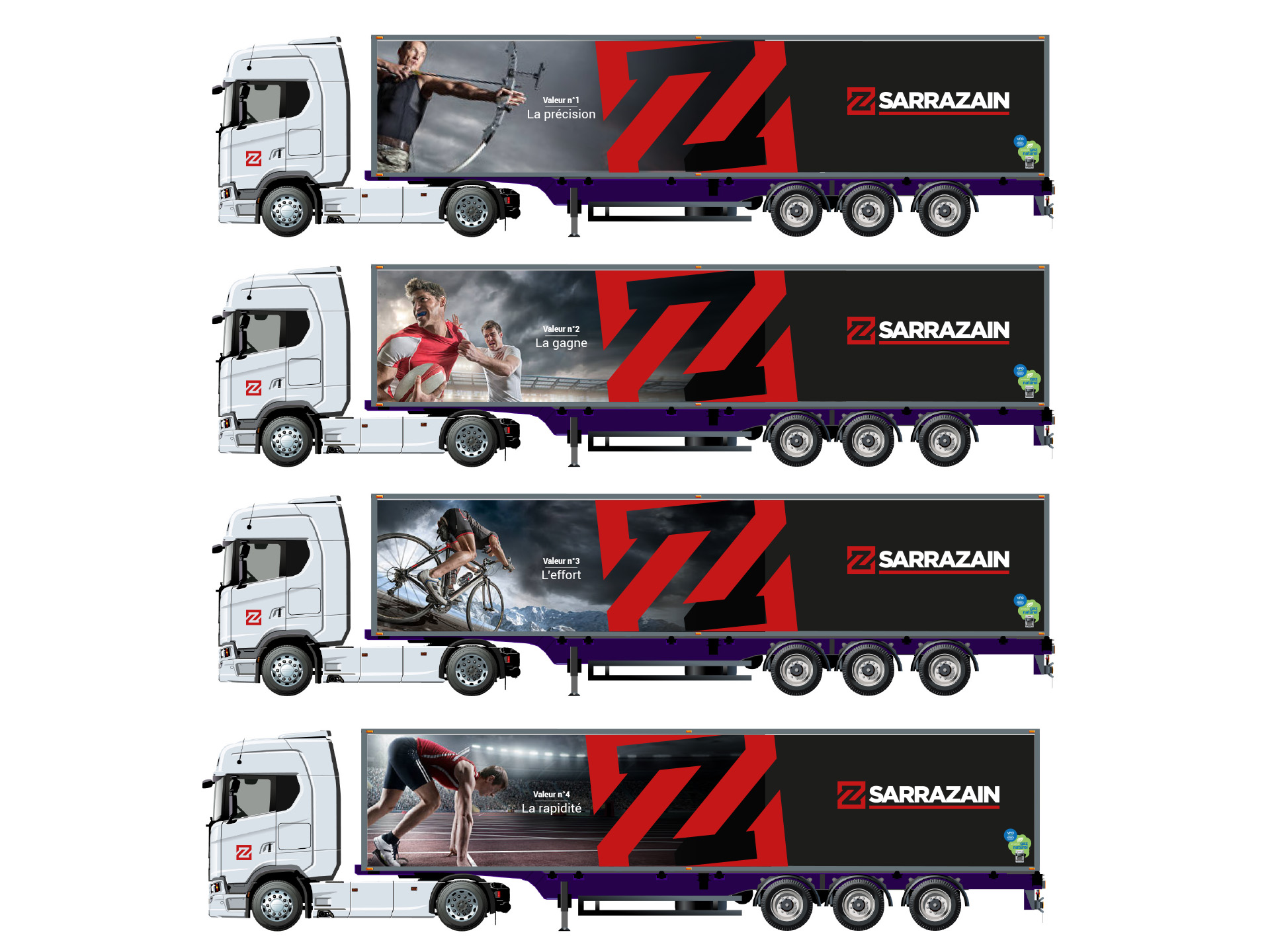 Nous avons développé une campagne de communication utilisant les vertus du sport – cher au dirigeant – déclinable sur les remorques.