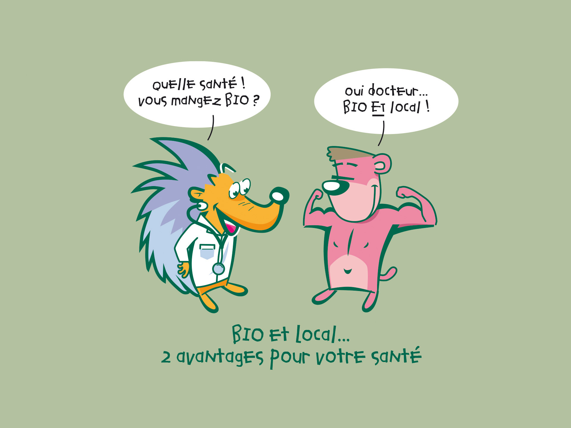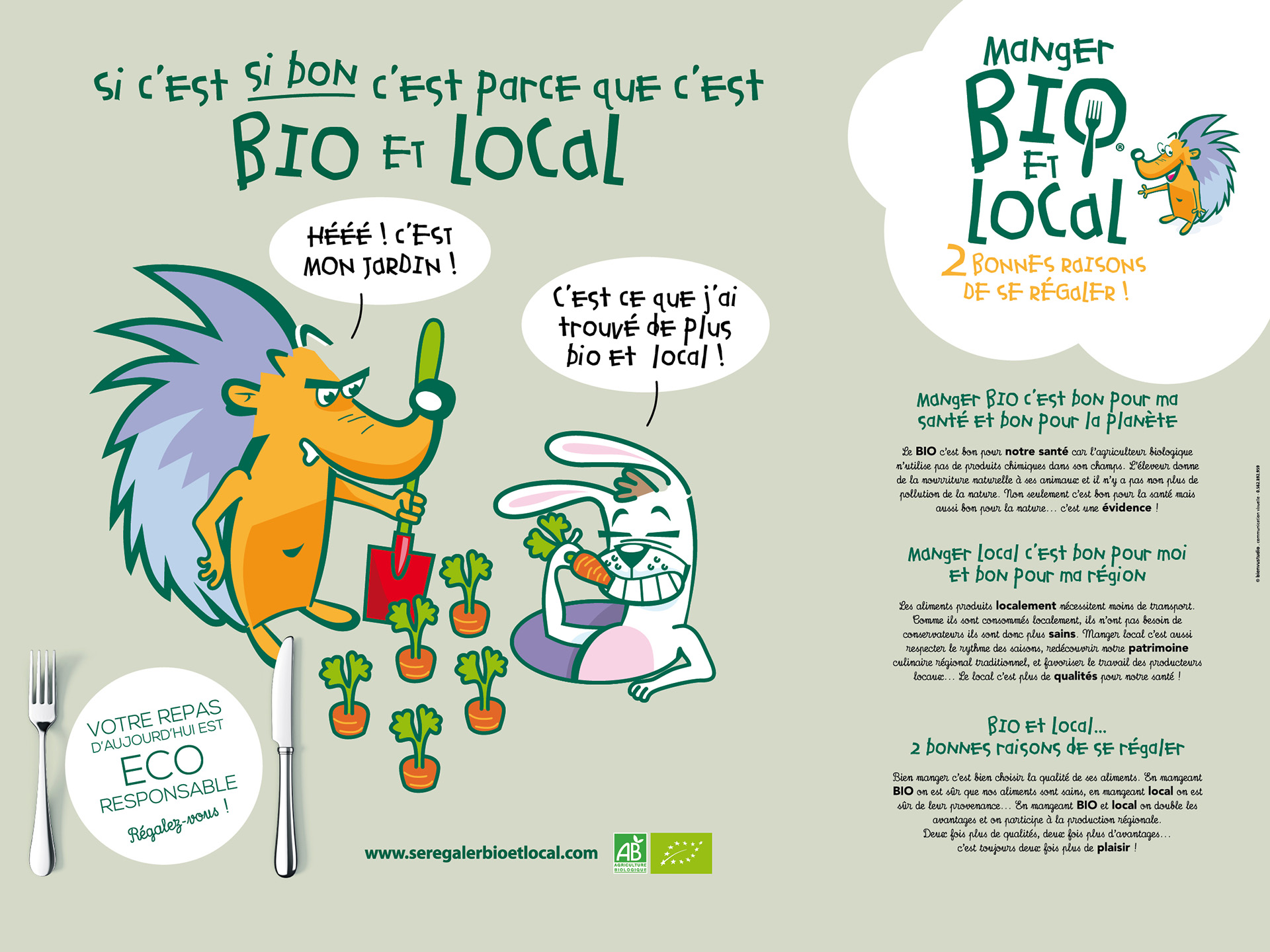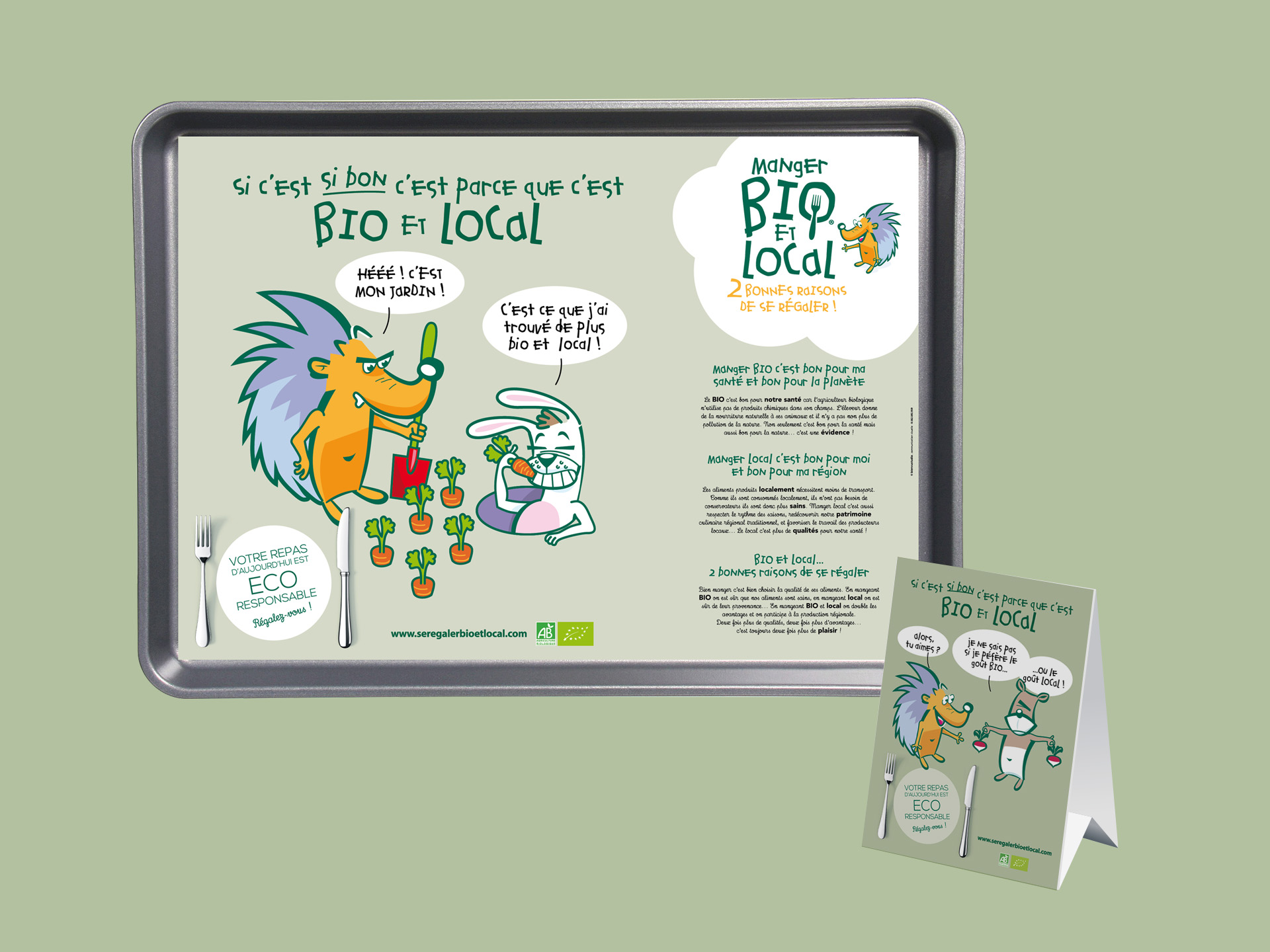 Nous avons créé une galerie de personnages « éco-responsables » visibles sur des sets de table, des affiches, des chevalets etc… l’opération est accompagnée d’un slogan sous forme d’un logo qui se déploie sur des produits dérivés.