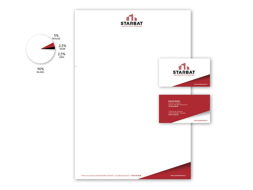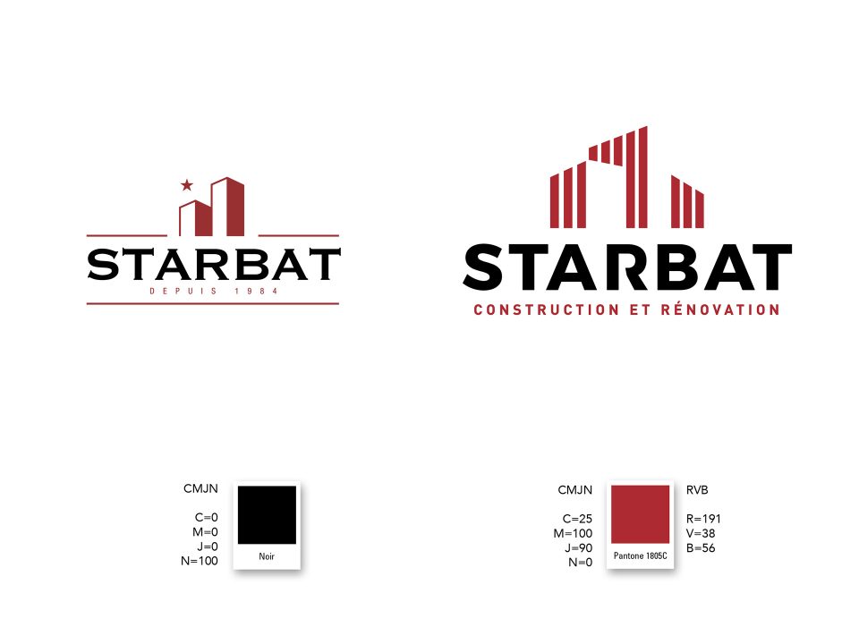 Définition de la marque ‘Starbat’, positionnement marketing et nouveaux outils commerciaux. Reprise des couleurs corporate existantes, affirmation de la typo, modernisation du graphisme, nouveaux slogans