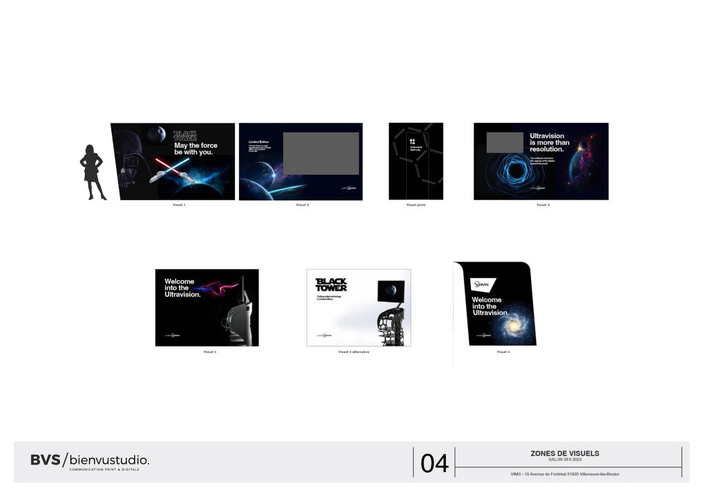 Sur les murs des visuels d’ambiance spatiale mélangée à des éléments high-tech installent le propos. Sur l’écran géant, un montage vidéo jouent avec les codes de Star Wars sans tomber dans l’anecdotique.
