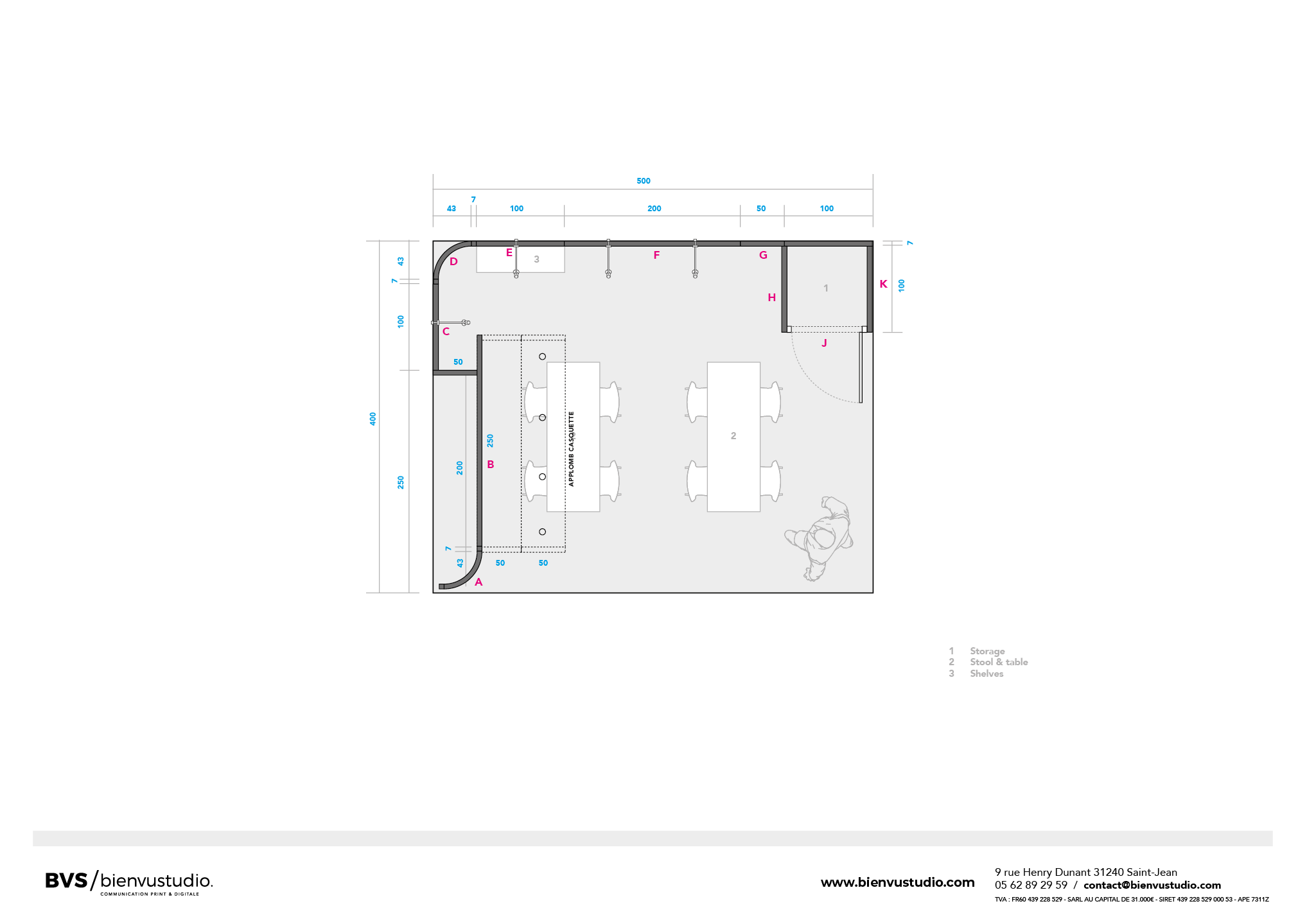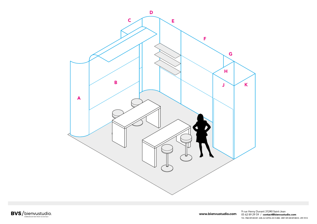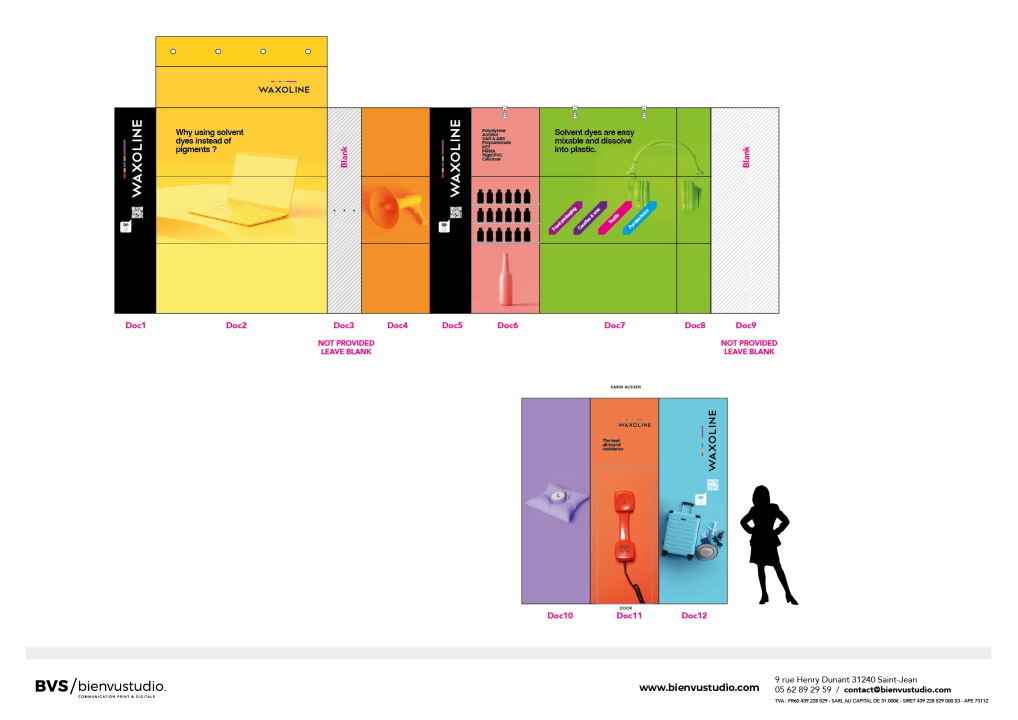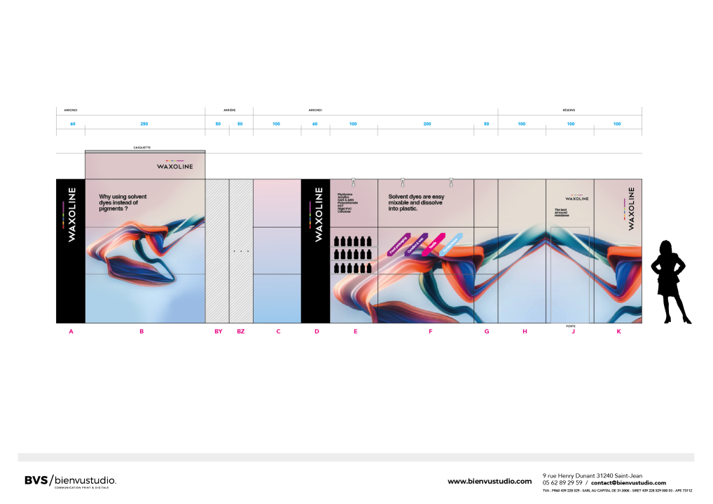 Création graphique d’un stand pour la K2022 de Dusseldorf. Le client veut promouvoir les pigments pour matières plastiques. Deux projets ont été produits. Le projet retenu met en scène des grand aplats de couleur dans lesquels sont mélangés des objets du quotidiens en ton-sur-ton. L’effet de la couleur est massif. Le visuel principal est ultra-visible (jaune) et solaire (positif). Le noir offre un contraste net.